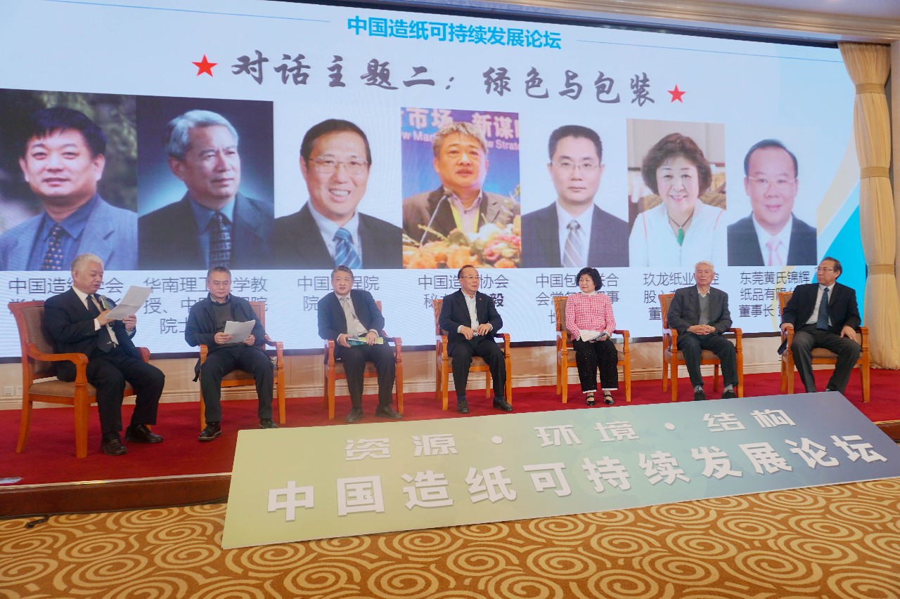 中國造紙學(xué)會(huì)常務(wù)副理事長曹振雷主持了“綠色與包裝”主題對(duì)話,邀請華南理工大學(xué)教授、中國工程院院士陳克復(fù),中國清潔生產(chǎn)的奠基人之一、中國工程院院士段寧,中國包裝聯(lián)合會(huì)常務(wù)副理事長兼秘書長王躍中,中國造紙協(xié)會(huì)秘書長錢毅,玖龍紙業(yè)(控股)有限公司董事長張茵,東莞黃氏錦輝紙品有限公司董事長黃勝雄等6位嘉賓進(jìn)行交流,造紙行業(yè)在科技進(jìn)步、包裝生產(chǎn)流通、紙業(yè)的經(jīng)濟(jì)貢獻(xiàn)、電商的促進(jìn)作用、環(huán)境保護(hù)取得的進(jìn)步等話題進(jìn)行了深入探討。