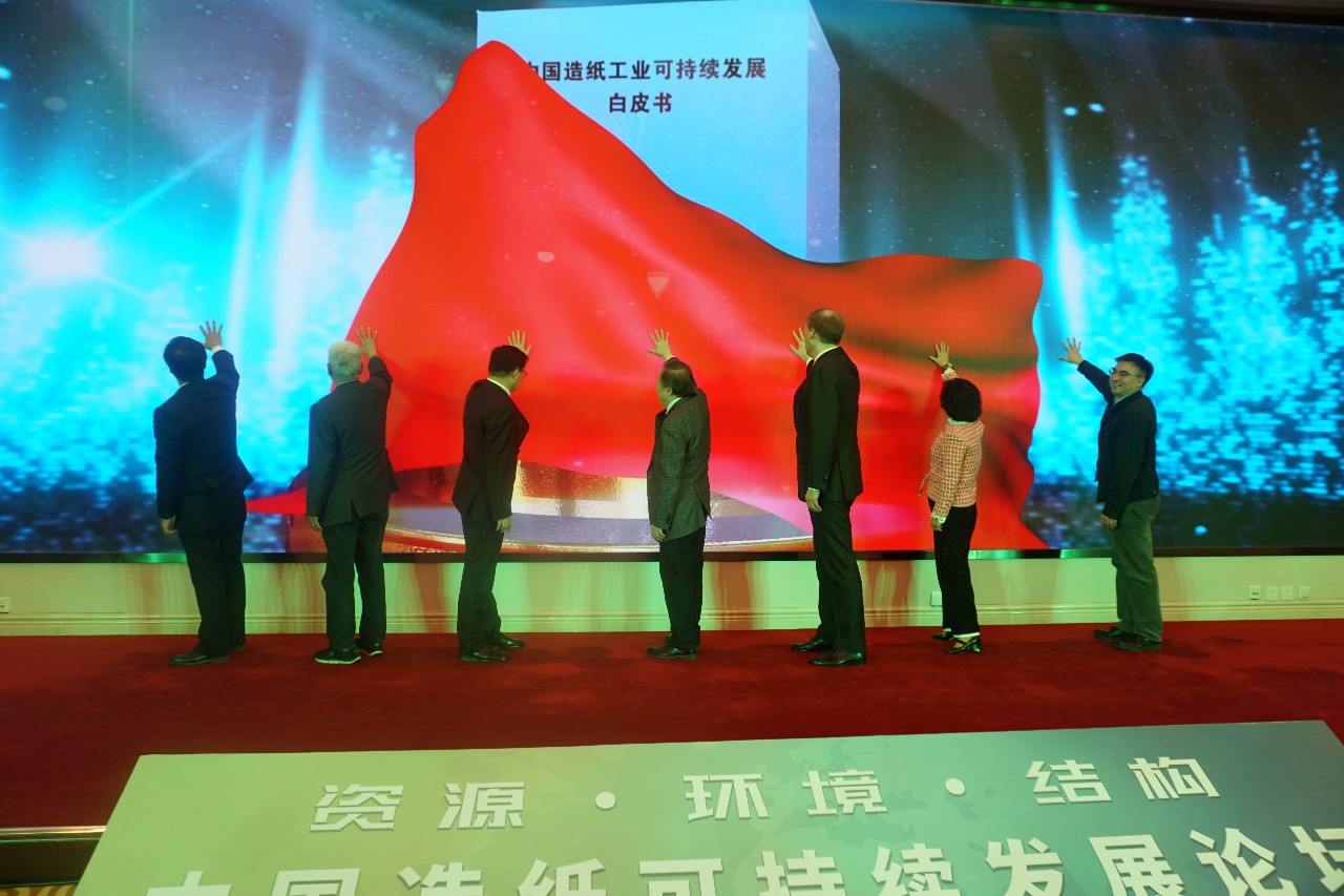 在《中國造紙工業(yè)可持續(xù)發(fā)展白皮書》發(fā)布環(huán)節(jié),中國輕工業(yè)聯(lián)合會(huì)原副會(huì)長、中國造紙協(xié)會(huì)原理事長錢桂敬,芬蘭駐華大使肅海嵐(Jarno Syrj?l?),中央宣傳部印刷發(fā)行局局長劉曉凱,中國新聞出版?zhèn)髅郊瘓F(tuán)有限公司董事長馬國倉,中國造紙協(xié)會(huì)理事長趙偉,華南理工大學(xué)教授、中國工程院院士陳克復(fù),玖龍紙業(yè)(控股)有限公司董事長張茵等嘉賓共同啟動(dòng)發(fā)布儀式,開啟中國造紙可持續(xù)發(fā)展新征程。