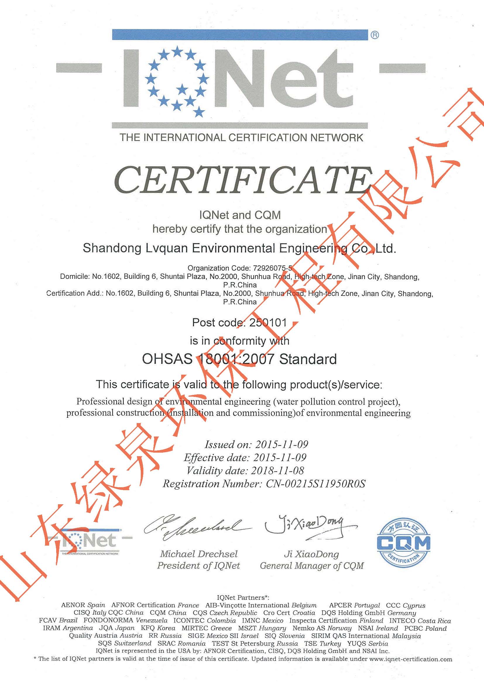在公司員工的不懈努力下,經(jīng)過方圓認(rèn)證專家的全面、嚴(yán)格、細(xì)致的指導(dǎo)和審核,確認(rèn)我公司環(huán)境/職業(yè)健康安全管理體系符合ISO14001:2004/OHSAS18001:2007標(biāo)準(zhǔn)的要求,并于2015年11月9日,向我公司正式頒發(fā)了ISO14001和OHSAS18001管理體系認(rèn)證證書。